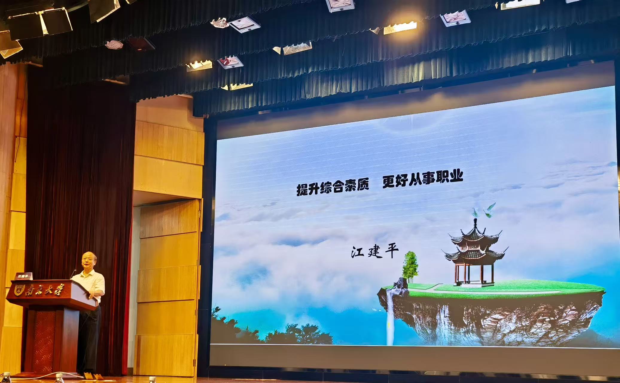 典礼结束后,原江苏省财政厅副厅长、原省人大财经委主任江建平厅长为新生带来“启航第一课”——《提升综合素质,更好从事职业》,结合自身经历分享了职业发展与综合素质提升的重要性。MEM教育中心执行主任周跃进随后详细解读了2025级培养方案,帮助新生明确学习目标与课程安排,为接下来的学习规划提供清晰指引。