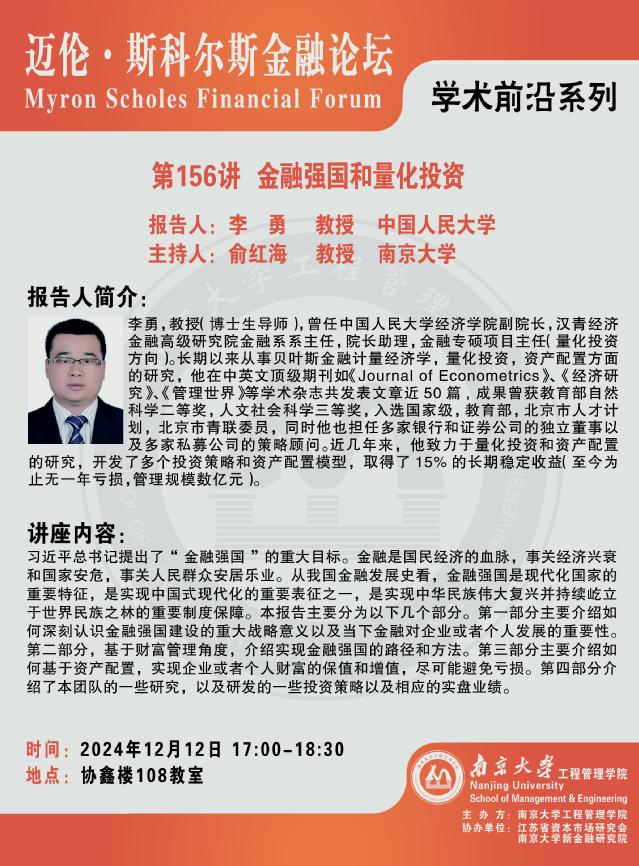 迈伦·斯科尔斯金融论:金融强国和量化投资