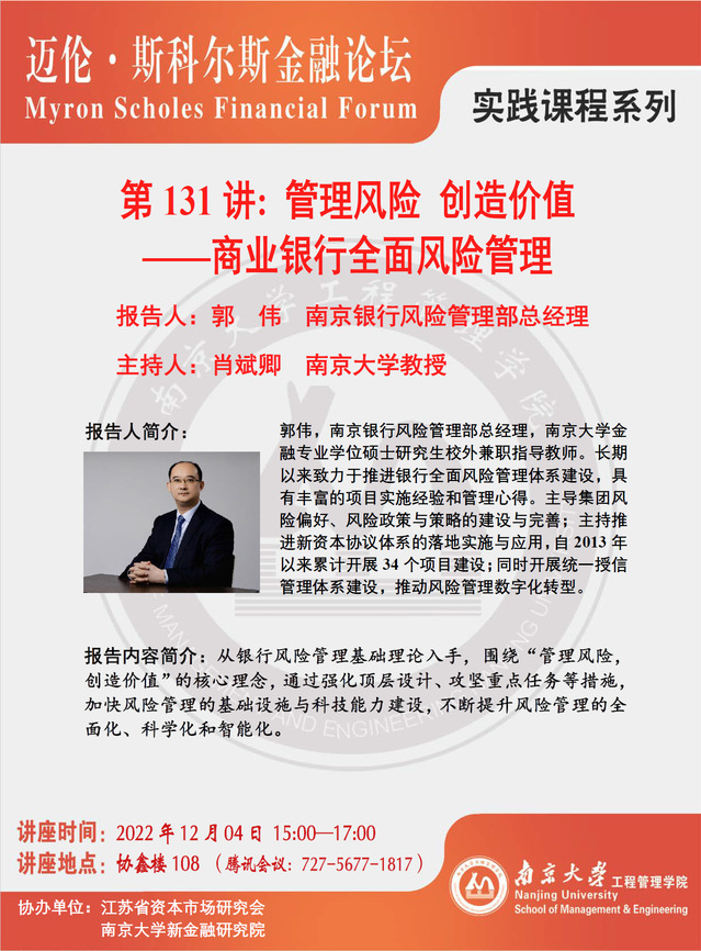 迈伦·斯科尔斯金融论坛:管理风险 创造价值 --商业银行全面风险管理