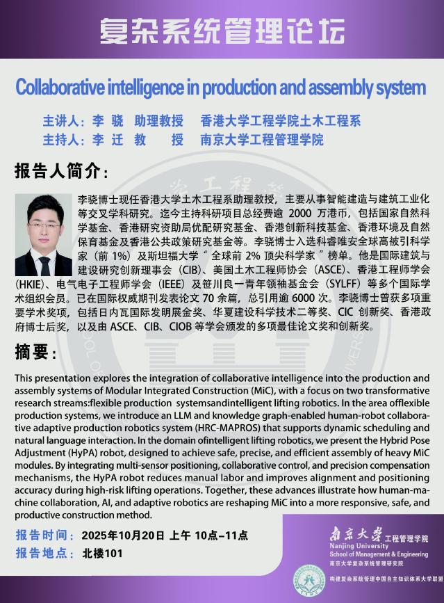 复杂系统管理论坛:Collaborative intelligence in production and assembly system