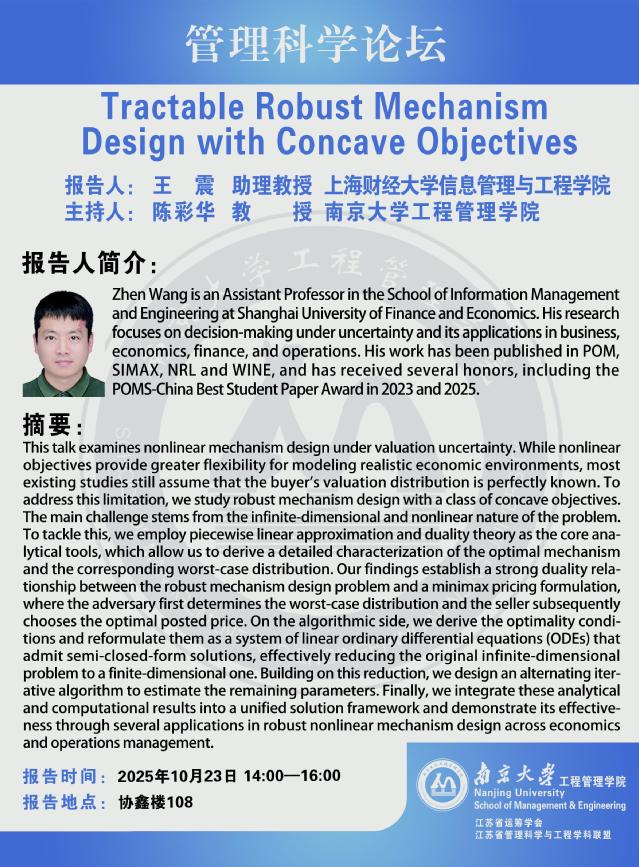 管理科学论坛:Tractable Robust Mechanism Design with Concave Objectives