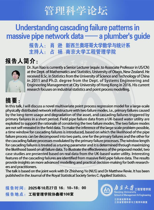 管理科学论坛:Understanding cascading failure patterns in massive pipe network data -a plumber's guide