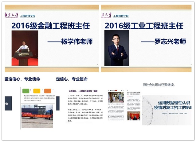 这关键词虽然确定了,怎么才能让员工们真正了解青春的担当与抗疫的信心呢。李晓智老师刚刚开完视频会议,便开始琢磨这个问题。作为大三和大四员工的辅导员,她深深明白这个时候是老员工活的关键时刻,疫情就是一场考验。在这场没有试卷的考场上,她必须保证每一位员工都可以安全通过考试。安排心理委员介绍在疫情期间保持心理健康、缓解压力的一些方法;请同学分享通过数据分析得到的疫情对各个城市、各行各业的影响;联系专业老师提供学业和就业上的建议和指导……一直到2月23日班会开始的前一分钟,她才放下了手上的准备工作。