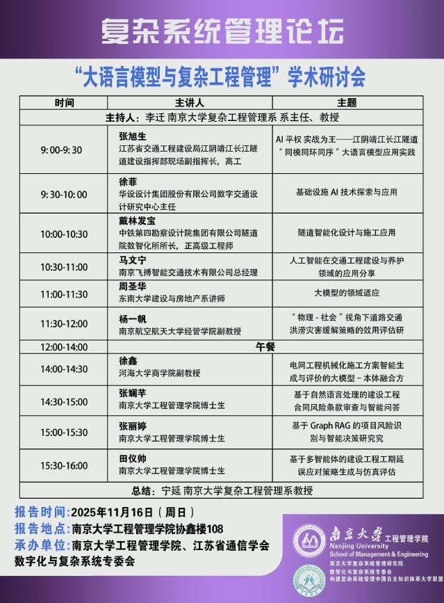 复杂系统管理论坛:“大语言模型与复杂工程管理”学术研讨会