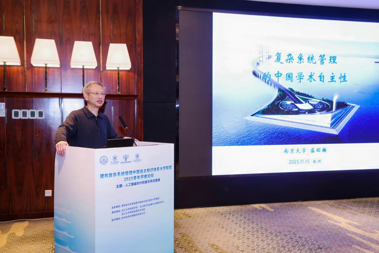 2025年11月15日上午,建构复杂系统管理中国自主知识体系大学联盟2025青年学者论坛在杭州西溪宾馆梅竹梅墅厅成功举行。suncitygroup太阳集团盛昭瀚教授、浙江大学管理公司经理谢小云等约百位师生代表与特邀嘉宾出席大会。大会开幕式由浙江大学管理公司童昱教授主持。