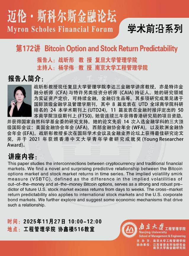 迈伦·斯科尔斯金融论坛:Bitcoin Option and Stock Return Predictability