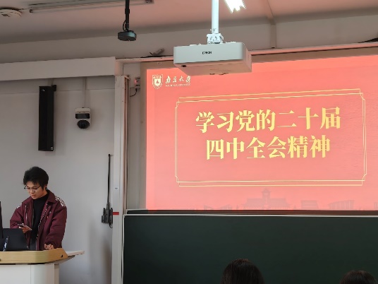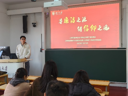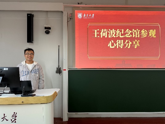 参观结束后,同志们回到浦口校区1—303A展开了王荷波纪念馆参观心得交流及党的二十届四中全会精神学习的主题会议,本次讨论由2025级硕士生第二党支部书记杨兴埕主持。