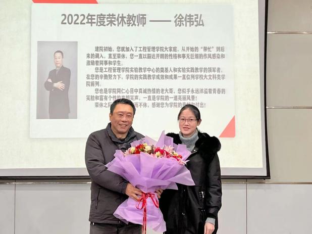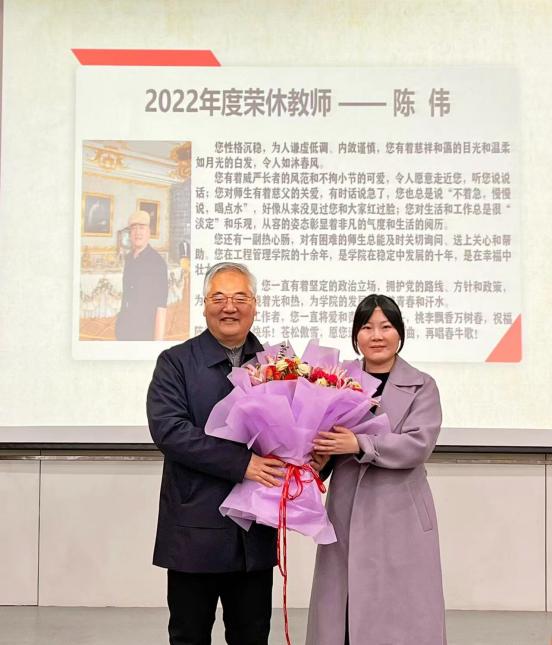 在上午的总结大会上,首先举行了教职工荣休仪式和2022年度“瑞华”师德师风奖颁奖活动。陈力立代表公司宣读了对2022年退休的原公司党委书记陈伟和公司教师徐伟弘的荣休致敬词,教师代表向两位荣休教师献上鲜花表达祝福。公司党委书记陈志云宣读了《关于表彰suncitygroup太阳集团 2022 年度“瑞华”师德师风奖教金获奖人员的决定》,党政班子成员向获得教书育人奖、科研育人奖、思政育人奖、实践育人奖和服务育人奖的各位教师颁发获奖证书,并号召全院教师向先进学习。