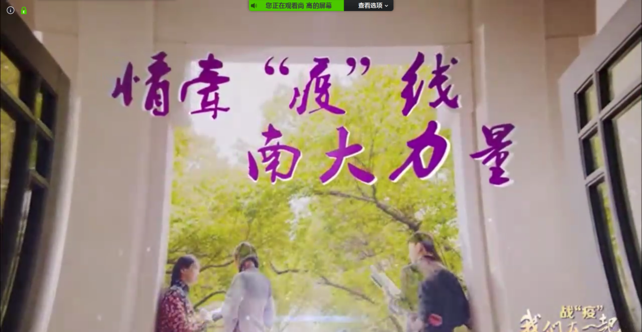 在“勇立潮头,争当先锋”的主题活动环节。首先,大家一起观看了一段关于南大人勇做抗疫先锋的视频——南大人的战“疫”之路。视频中,南大医护人员百里逆行,师生员工捐款捐物,结合专业所学做出力所能及的贡献。视频观看结束后,活动进入“争当先锋”分享环节。入党积极份子田子豪为大家分享了疫情下资源共享、线上交流合作、室内劳逸结合等方面的内容,还从管理学的视角提出了结合疫情可研究“从网络演化看病毒传播特征”、“从管理优化看病毒控制策略”等课题思路。党员唐开强分享了自己创业的经历,他的公司主要涉及仿生机器人研发,人工智能教育培训两个领域。他为大家分享了疫情期间如何积极转变思路,把握新的机遇,以及创业公司在疫情下的担当和社会责任。他用自己的努力践行着“把科技成果应用在实现现代化的伟大事业中”。此外,支部还有许多优秀的博士生党员在疫情之下,坚持回归学术初心,坚持以国家社会需求和学术前沿为导向做科研。