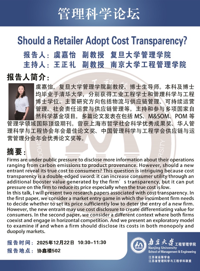 管理科学论坛:Should a Retailer Adopt Cost Transparency?