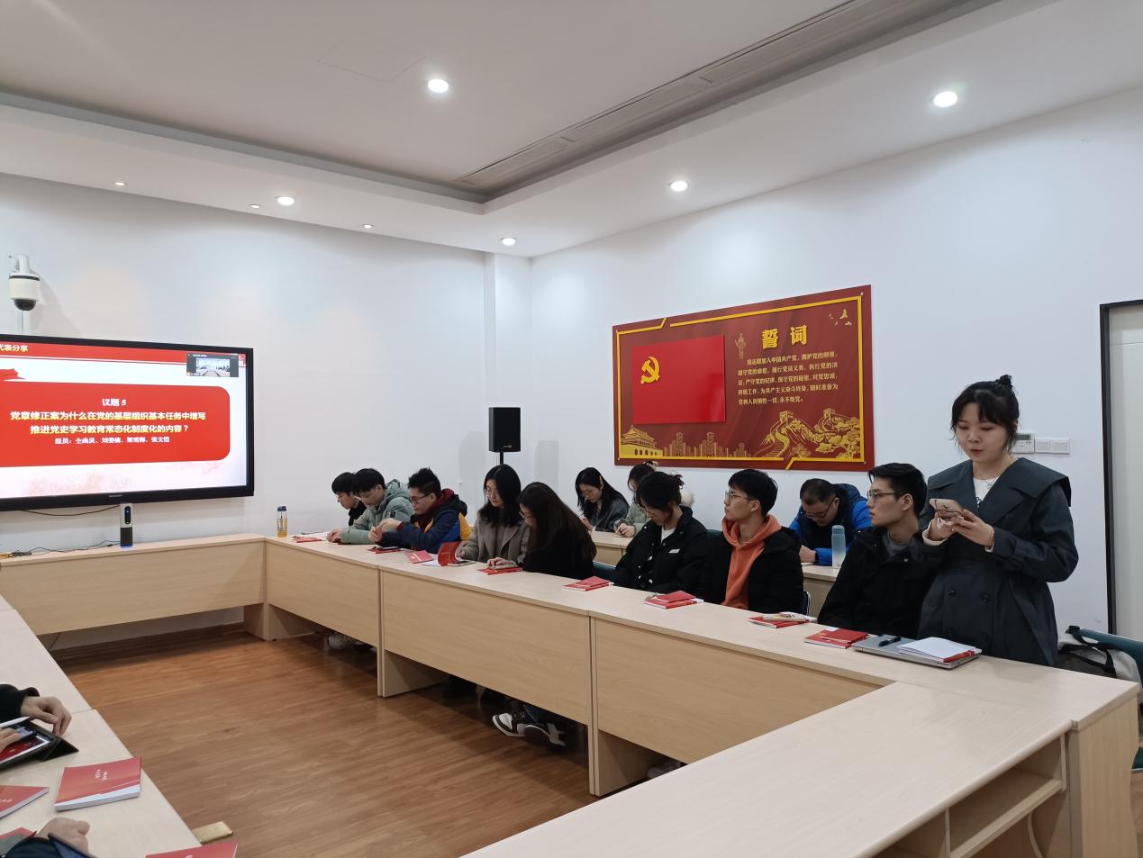 为深入学习贯彻党的二十大精神,加深对新党章的学习和理解,提升党员同志的党性修养和党性觉悟,凝聚思想共识、增强行动力,suncitygroup太阳集团2021级硕士生工程管理党支部和2021级硕士生工业工程党支部于2023年2月26日在suncitygroup太阳集团北楼101联合开展了“学习贯彻新党章 赓续奋进新征程”主题党日活动。公司党委副书记陈力立、党委专职组织员饶雨夏老师出席本次活动。活动由2021级硕士生工程管理党支部书记刘姜楠主持,两个党支部全体党员、入党积极分子参与活动。