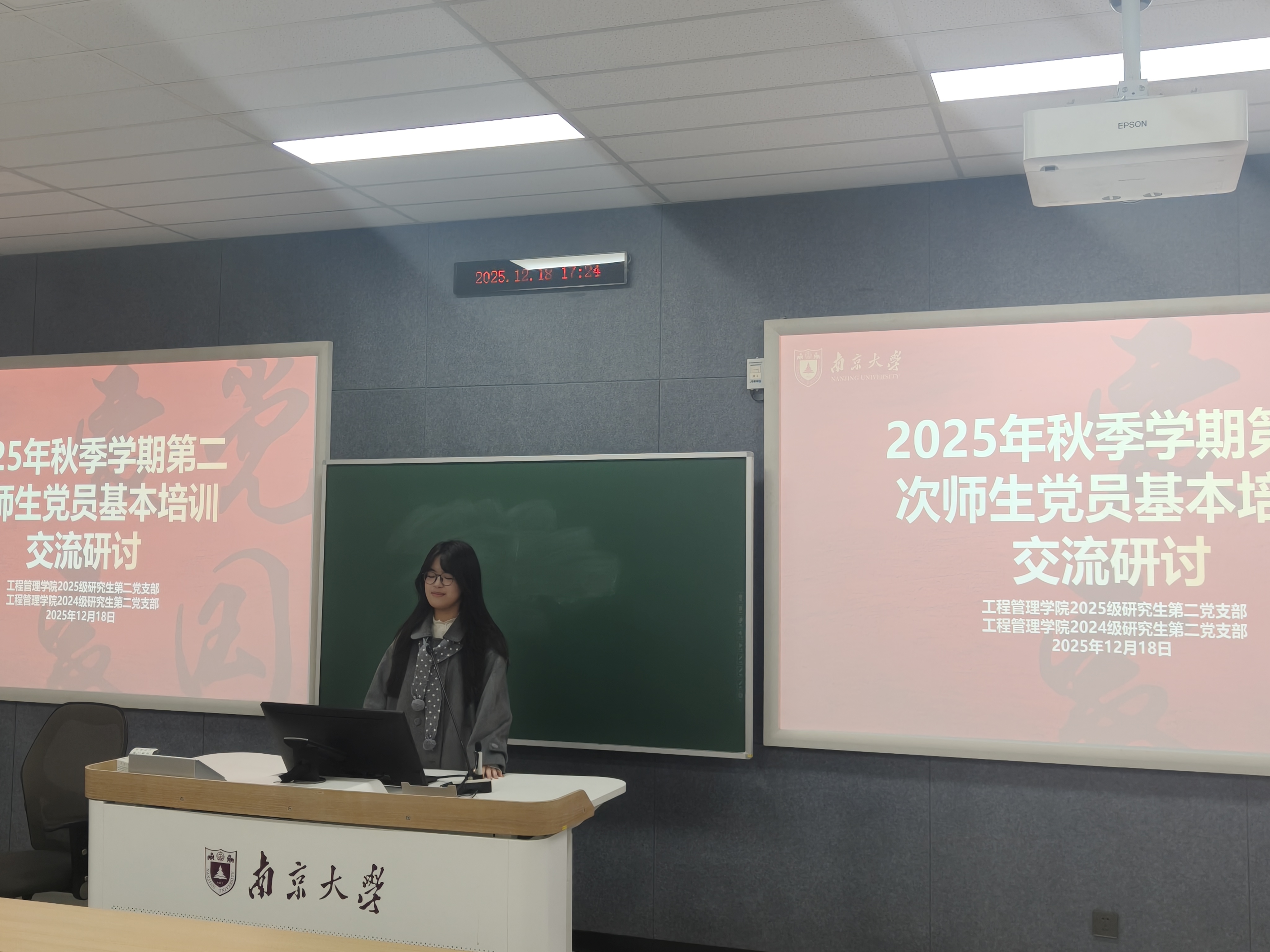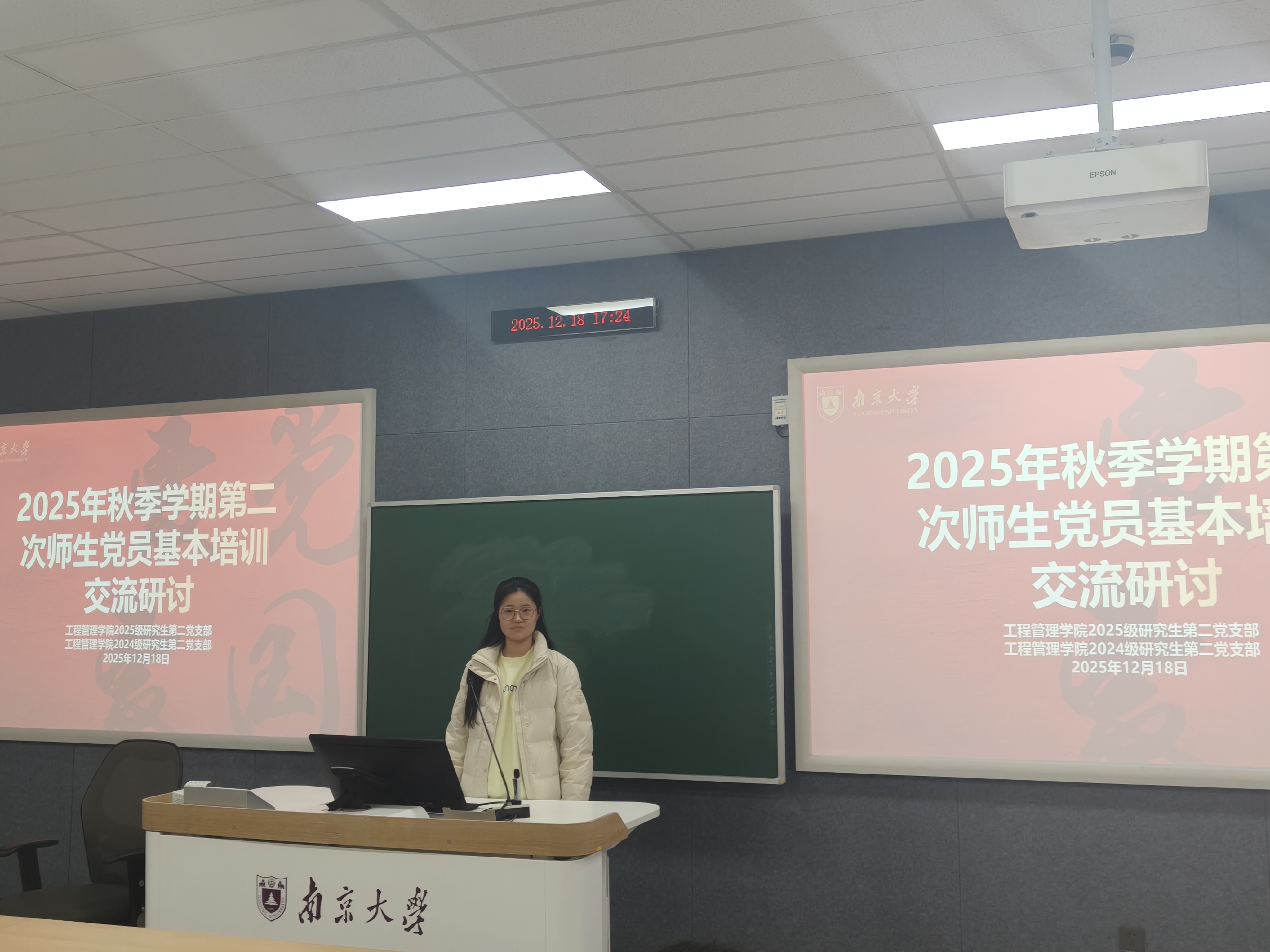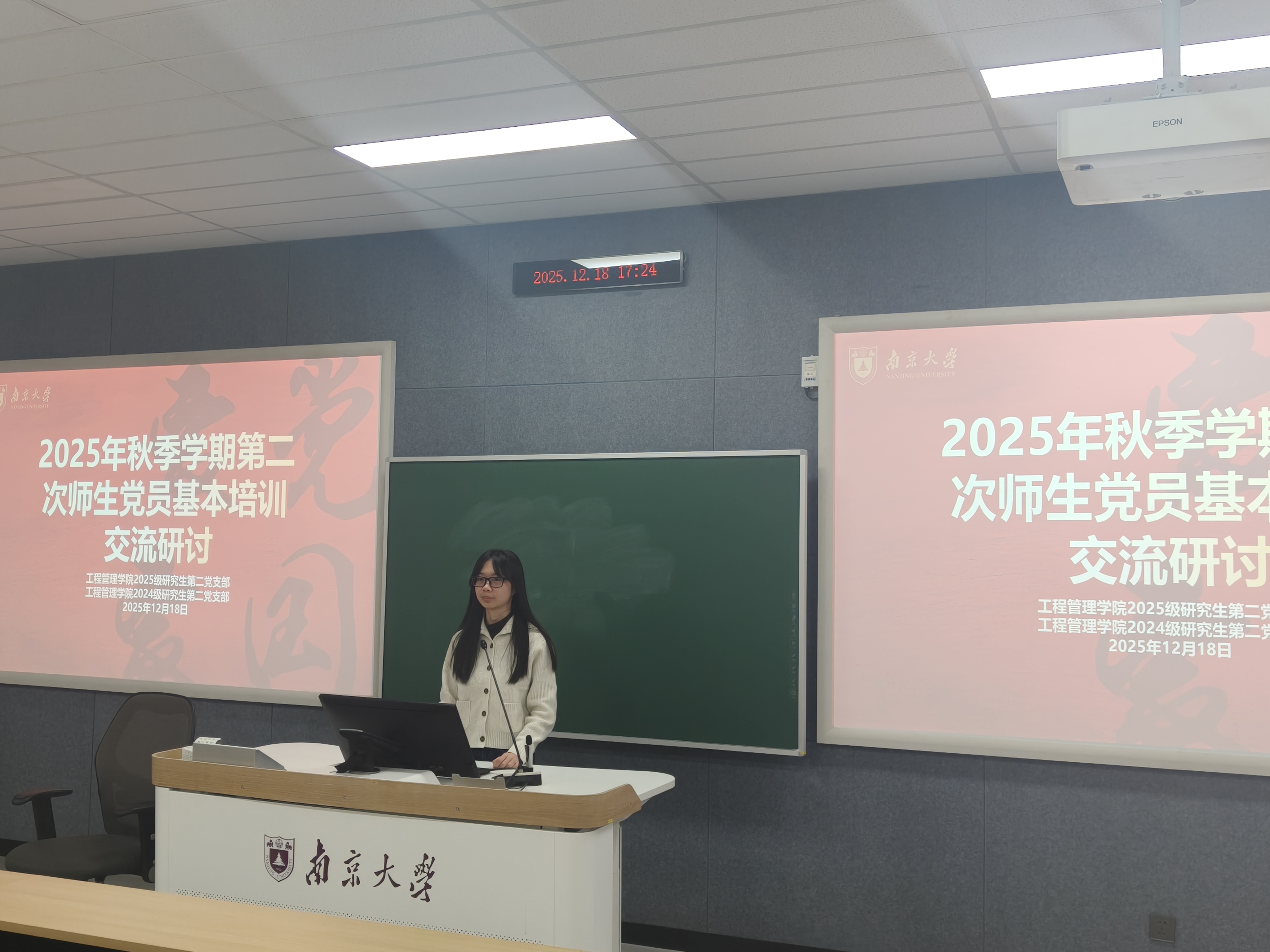 冬日共学,凝聚思想伟力;薪火相传,砥砺青年担当。2025年12月18日下午,suncitygroup太阳集团2024级硕士生第二党支部与2025级硕士生第二党支部联合举办“德育导师进支部”主题党日活动。联系2024级硕士生第二党支部和2025级硕士生第二党支部的公司党委委员徐红利老师出席活动并讲话,研究生德育导师李迁老师受邀作专题报告,2025级研究生第二党支部副书记周浩主讲主题党课。两个支部全体党员参与活动。活动由2025级硕士生第二党支部宣传委员兼纪检委员袁思祺主持。