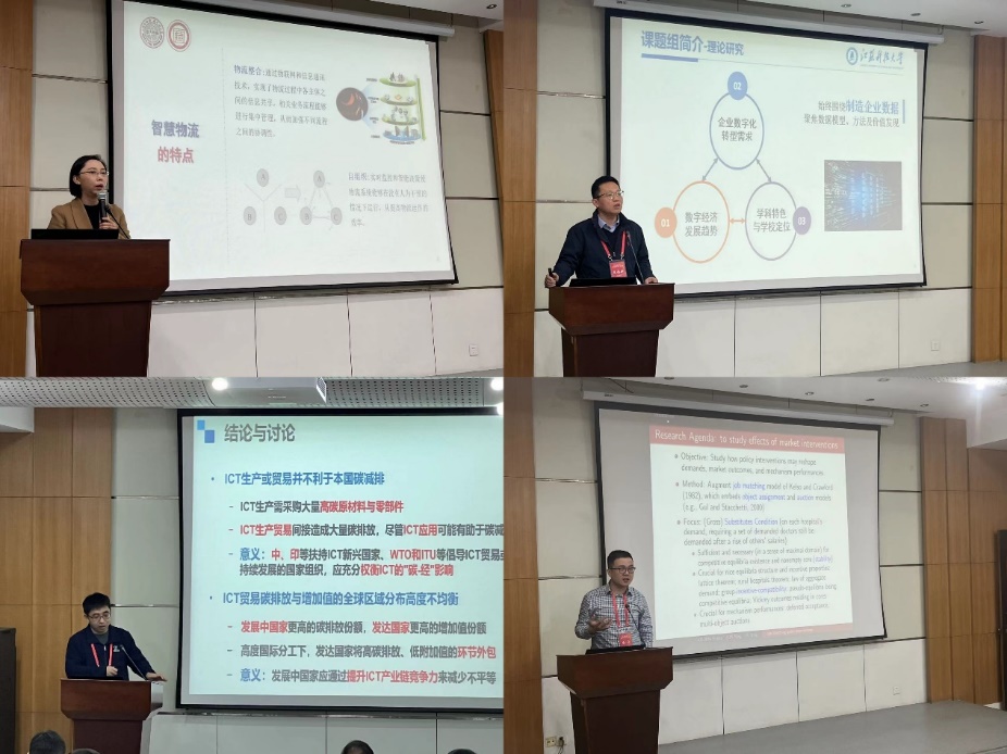本次论坛共举行了八场专家报告。上午的三场报告由suncitygroup太阳集团肖条军教授和suncitygroup太阳集团商公司贺伟教授主持。苏州大学商公司经理冯博教授作题为《智慧物流运营管理:综述及未来研究》的报告,从物联网、信息通信技术和人工智能等智能技术出发,结合物流网络系统建设案例,包括物流系统底层技术应用、业务逻辑、运营框架,最终建立特定场景下的优化问题。江苏科技大学经济管理公司经理王念新教授作题为《制造企业信息系统使用数据的分析与应用》的报告,以公司在船舶行业的积累为基础,在分析信息系统用户使用规律的基础上,探索了其在绩效评价、云化迁移、信息系统模块化重构等方面的应用。南京航空航天大学经济与管理公司教授、人事处副处长王群伟作题为《数智时代的两个挑战:低碳化与公平性》的报告,通过对数智时代ICT贸易过程的分析,给出了低碳化和公平性两个视角下的研究成果。
