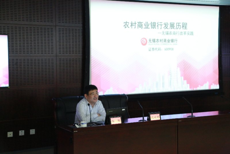 第一站,同学们来到无锡农村商业银行。在本次调研前,同学们已根据课程项目进行了分组,分别就商业银行非息收入与流动性风险研究、基于RAROC的商业银行费用分摊技术研究、老员工网贷风险及治理研究、基于大数据的小微企业画像研究、基于互联网生态的商业银行信用卡业务创新研究、金融机构IT黑洞及其治理研究六个课题对无锡农商行的非息收入、费用分摊、风险治理等方面进行了研究。调研伊始,无锡农村商业银行董事长邵辉首先作《农村商业银行发展历程——无锡农商行改革实践》的报告。邵辉首先对现代商业银行起源、农村商业银行的历史背景和当前发展现状进行了简要回顾,随后介绍了无锡农商行发展历程、现状、未来的机遇以及挑战。农信系统总量规模庞大,可以媲美中国工商银行,对于中国的农村金融体系的构建和发展意义非常重大。无锡农商行以“好地方的好银行”为定位,与南大等外部机构密切合作下,通过流程再造逐步规范,提高了资产质量,实现了良性发展,并于2016年9月23日在A股主板上市。目前,无锡农商行实现了快速均衡发展,盈利能力稳健增长。面对当下市场竞争、信息披露、投资者关系管理、公司内部控制四个方面的挑战,农商行将积极转型,进一步深化管理,以“深、新、强、全”为目标发展成为“伴您成长的标杆银行”。他建议同学们:金融业发展迅猛,从事金融业要加深对政策适应、金融科技、营销方法的理解;要积极关注新闻,多看新闻联播,提升政策理论水平,学会识别机会与风险;更要保持终身学习、关注前沿,及时熟练掌握新工具新方法。最后,面对同学们提出的企业核心竞争力、风险收益平衡等问题,邵辉给与了精彩解答。