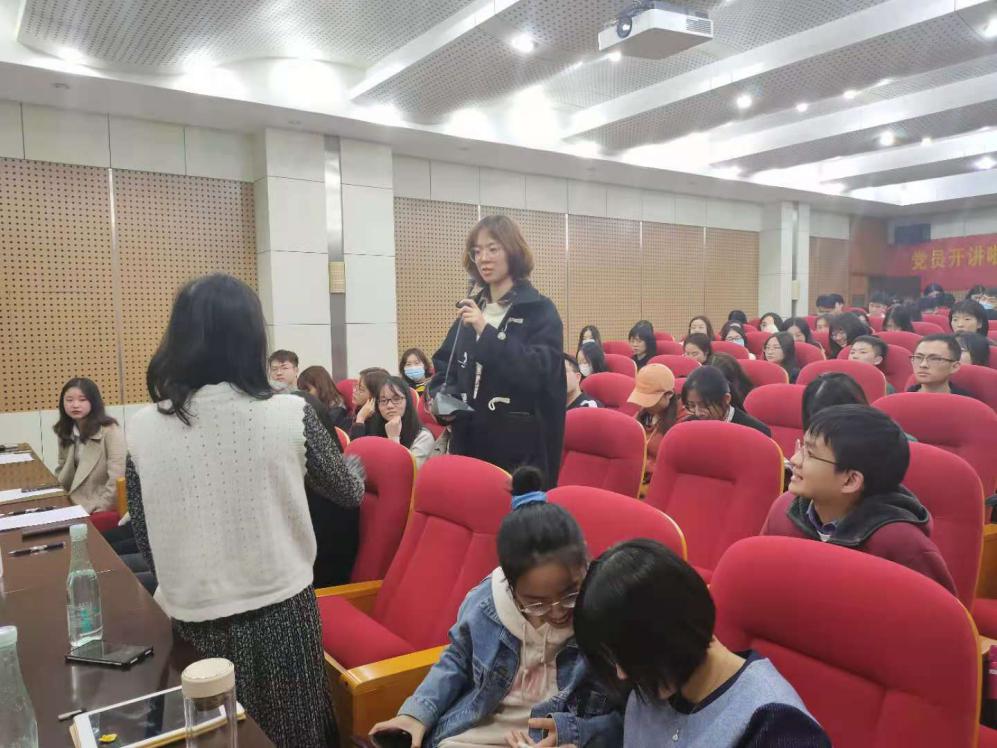 交流互动环节,同学们十分热情,提出了不同方面的问题,也得到了嘉宾们耐心认真的解答。其中,新生党员提出了“如何平衡学习与工作时间?”“零实习经验的同学应如何准备面试?”等问题,赖苑苑与陶艳萍同学逐一解答了大家的疑惑,她们表示:设立清晰的目标,抓住碎片时间来处理工作,留出整块时间用于科研学习,便能在有限的时间内将每项任务保质保量地完成;在参加实习前,可以通过竞赛和相关夏令营积累项目经验,发掘自己的优点与潜力。
