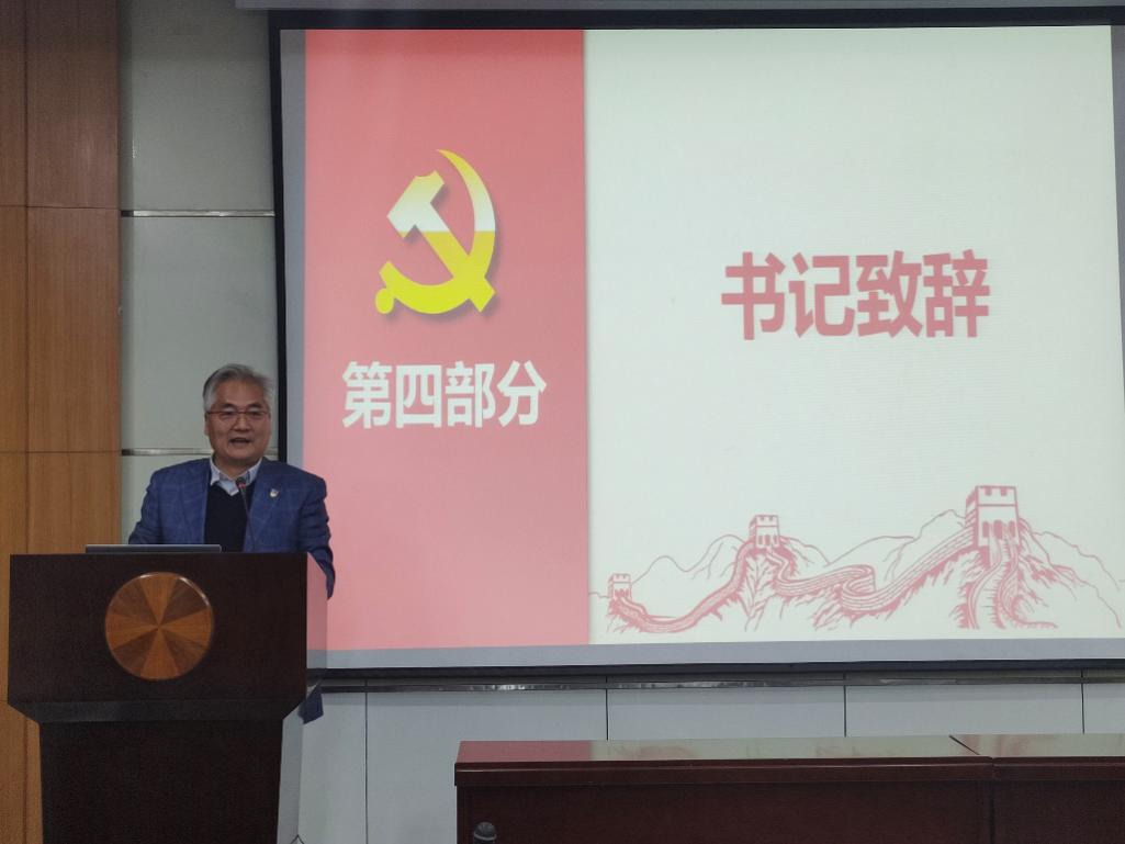 在书记致辞环节,陈伟书记对本次活动进行了点评,结合活动主题对全体党员提出了三点建议:一是希望党员能够发挥先锋模范作用,在学习上、生活上做好榜样,带领身边的同学共同进步。作为一名研究生党员,不仅要保持自己的先进性,同时要把先进性作为开展工作的基础;二是员工党员要密切联系群众,充分发挥桥梁纽带作用,带动同学们共同建设好集体,让群众感受到党支部的凝聚力;三是将个人理想与国家发展联系,利用公司资源不断学习,在一次次参加讲座、论坛以及与优秀党员的交流过程中提高综合能力,脚踏实地、一步步向理想的高峰攀登。