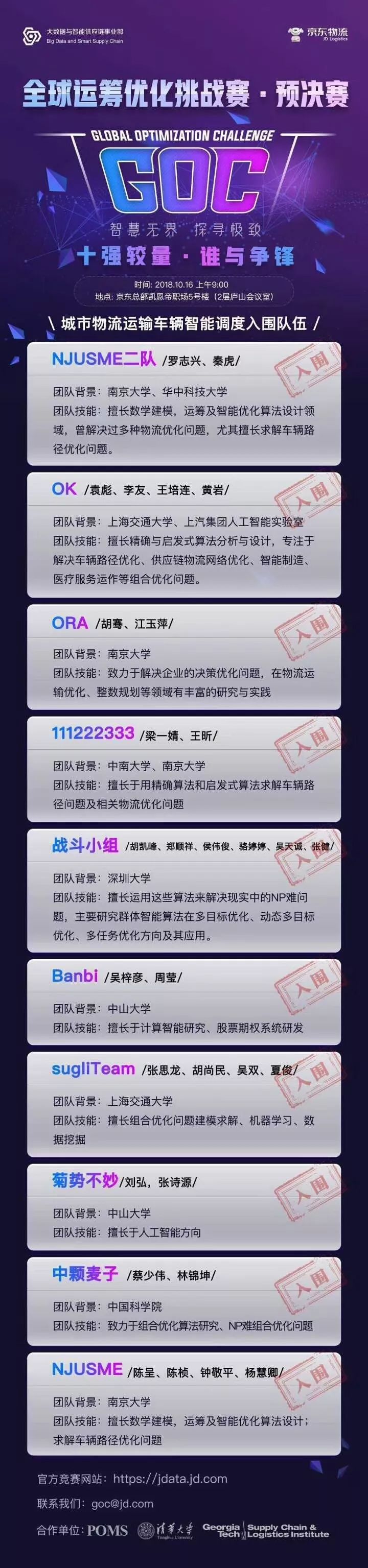 据悉,本次全球运筹优化大赛由京东物流和京东大数据与智能供应链部共同举办,集结全球运筹优化爱好者,共同去探寻最优的路径、最优的库存,系全球首个运筹优化挑战赛。赛事历时四个月,包含“城市物流运输车智能调度”以及“仓储网络智能库存管理”两道赛题。大赛共吸引了3519名参赛选手,覆盖了全球600多个顶级学府和机构,涉及麻省理工公司、斯坦福大学、佐治理工公司、新加坡国立大学、纽约大学、哥伦比亚大学、宾州州立大学、清华大学、北京大学等。