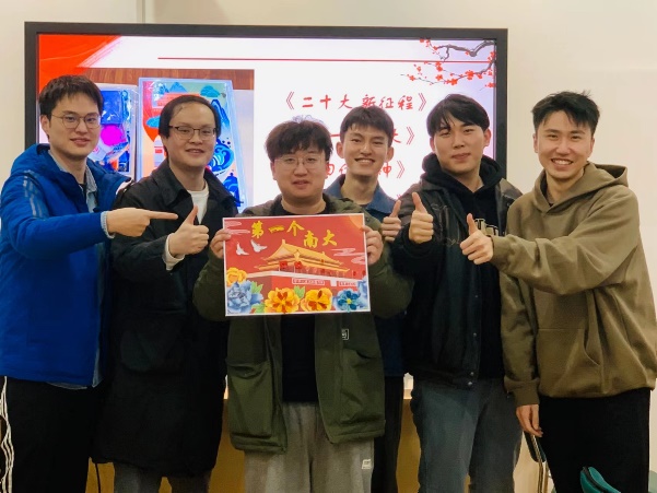 本次主题党日将理论学习与特色手工有机结合,让党员和积极分子通过实践学深悟透二十大,将“二十大 新征程”、“踔厉奋发”、“第一个南大”、“回信精神”通过青年学子的创造力具象化,用一种极富青春活力的方式,展现在建设“第一个南大”的“奋进行动”中,鲜艳多彩的“工管色彩”,绘就二十大新征程的绚丽蓝图。