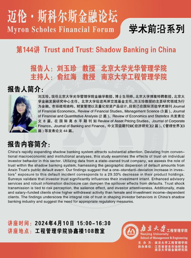迈伦·斯科尔斯金融论坛:Trust and Trust: Shadow Banking in China