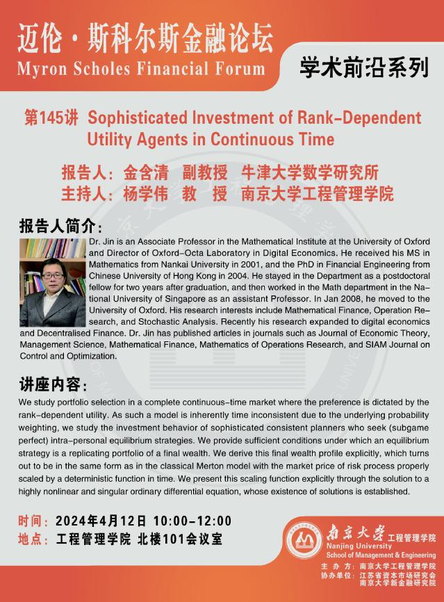 迈伦·斯科尔斯金融论坛:Sophisticated Investment of Rank-Dependent Utility Agents in Continuous Time