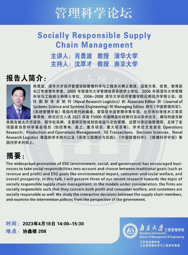 管理科学论坛:Socially Responsible Supply Chain Management