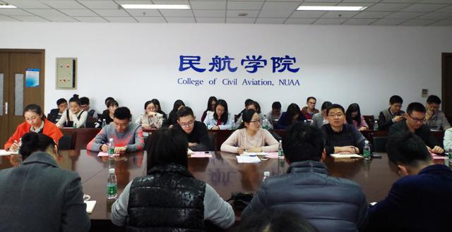 在下午的安排中,同学们乘车到南航将军路校区,与民航公司研究生干部进行工作交流。该院全日制本科生、研究生人数超过3600人,是南航在校员工数最多的公司。民航公司党委副书记方正对公司研骨班师生一行表示热烈欢迎。该院联合党支部书记、院研会主席和研究生辅导员分别介绍了公司研究生党支部建设、迎新和毕业季主题活动、研究生思想政治教育的好做法和好经验。陈卉老师就信息化背景下的学习型党支部建设这一课题与民航公司师生进行了交流。双方还围绕研究生党支部、班级建设,以及研究生会日常工作,尤其是如何提高同学们参与活动的积极性,如何更好地运用新媒体,如何进行活动创新等共同的问题进行了探讨。座谈会结束后,民航公司师生带领研骨班同学参观了民航工程训练中心。