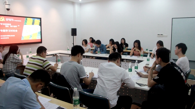 9月7日晚,公司2015级学术型硕士党支部在北楼会议室展开了一次主题为“学习系列讲话、强化‘四个意识’”的学习讨论会,这也是该支部被确定为江苏省教育系统开展“两学一做”学习教育监测点后开展的第二次集中学习活动。公司各员工党支部书记观摩了此次学习讨论。