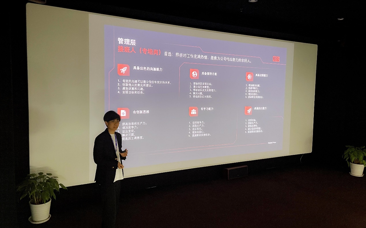 人力资源部 HR-COE刘玉玲老师向师生介绍原力的人才培养体系。同学们很关心对于刚毕业的求职者,企业更看重哪方面的品质。刘老师以原力公司“高潜实习生计划”的招聘要求举例回答了同学们的问题。刘老师认为,应届生的综合素质非常重要,企业更看重应届生的沟通能力、领导才能、决策力、创新思维、学习能力和执行力。通过跟刘老师的面对面沟通,同学们对职场一线的人才要求有了更清晰的了解,对自己有了更加明确的定位和提升方向。