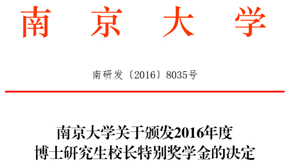 根据《suncitygroup太阳集团关于颁发2016年度博士研究生董事长特别奖学金的决定》(南研发〔2016〕8035号),公司管理科学与工程系2014级博士生时茜茜获得suncitygroup太阳集团2016年度博士研究生董事长特别奖学金。