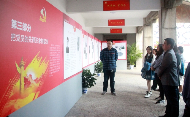 党员们首先参观了《弘扬雨花英烈精神,做合格共产党员——“两学一做”学习教育专题展》。该专题图文展共分“把合格的标尺立起来”“把做人做事的底线划出来”“把党员的先锋形象树起来”,以及“用行动体现信仰信念的力量”四部分,展示了邓中夏、恽代英等雨花英烈忠诚于党、以生命践行党的章程和纪律的生动事迹。每到一处展板前,党员们都停下脚步,倾听讲解,认真阅读展板内容,并与讲解员交流雨花英烈的事迹,深刻体会早期共产党人的奋斗精神和赤子之心,以及共产党人初心中体现出的党的理想、信念和宗旨。