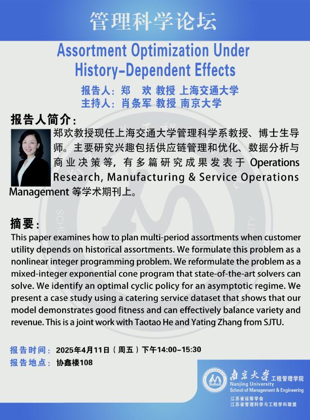 管理科学论坛:Assortment Optimization Under History-Dependent Effects