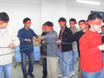 午餐过后,双方的党支委成员聚在一起,一同就党组织生活开展形式及内容进行交流。随后开展的素质拓展训练则把当天的活动推向了高潮。“数字传真机”、“盲人方阵”、“盲人摸象” 让很多同学第一次体会到什么是真正的团队精神、团队意识。活动结束后,双方同学争相发表了活动感想,大家认识到团队力量的充分发挥需要一个好的领导者,也需要每一个团队成员的出谋划策和积极配合。未来的社会,注定是属于那些拥有团队精神的人。