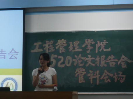 同时在管科会场,一场学术风暴也正冲击着大家的思维极限。在刘月同学有条不紊的主持下,管科会场报告会也正式拉开序幕。接着,07硕士雷丽彩、07学士赵瑞、07硕士吕旦菲、06学士钟腾跃、08硕士张静文、06学士景雷以及07博士王虹分别就他们的课题展开了生动形象的报告,赢得了在场老师的一致喝彩。最后由陈国华老师做了综合点评,他细致而生动地对每位同学的课题进行了剖析与建议,同学们都受益匪浅。