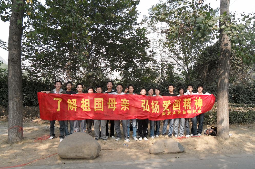 08级自动化系同学利用周末时间,在玄武湖沿岸向路人发放印有“祖国六十年大事记”的宣传单,并开展了关于祖国发展史的问卷调查,路人纷纷在印有“了解祖国母亲,弘扬爱国精神”的横幅上写上祝福的话语。值得一提的是,一位到南京游玩的德国友人在了解到同学们的活动目的之后,不由得竖起大拇指,欣然在横幅上写下了“Best wishes from Germany”的美好祝福。