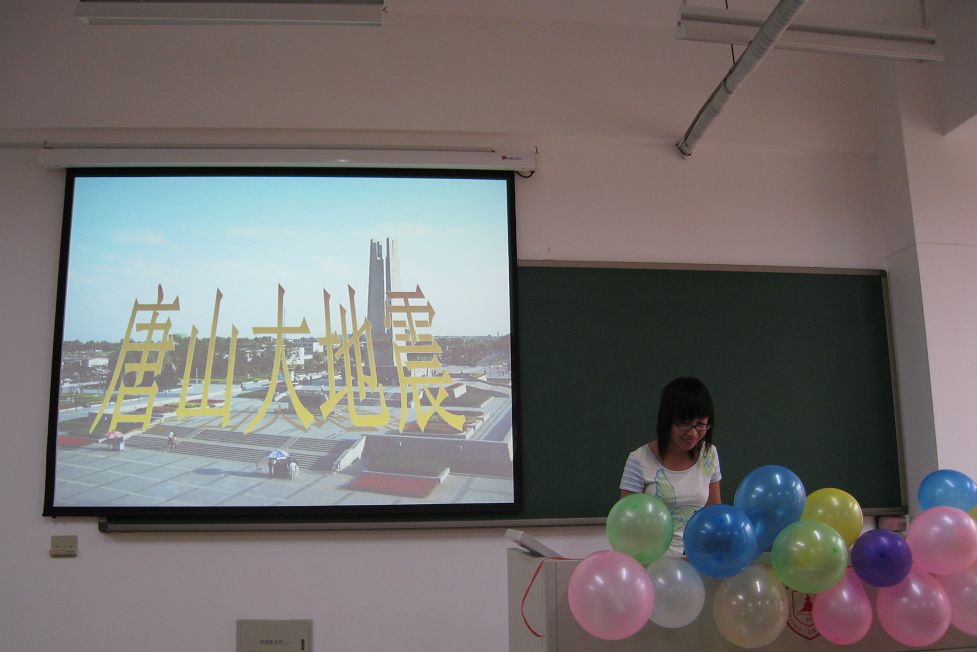 员工代表以图片、音乐、视频的形式,带领大家共同回顾了建国60周年以来中国人民所经受的6次重大的苦难,生动展现了无情的灾难中顽强奋斗的英雄的中国人民的形象。活动现场许多同学在目睹了灾难的残酷后都不禁黯然神伤;看到军民团结一致抗灾的感人场面都深受感动;看到灾后重建的速度及繁荣成就都为之自豪与骄傲。特别是在回顾08年汶川大地震的一段视频中,教室顿时安静下来,面对一个个惊心触目的镜头,很多同学不禁湿了眼眶,这是为国殇而悲,为团结而感,为复兴而傲。