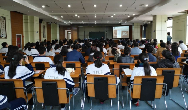 招生办赵鸣老师在太原外国语公司作招生宣讲,并介绍外语类保送生招生政策