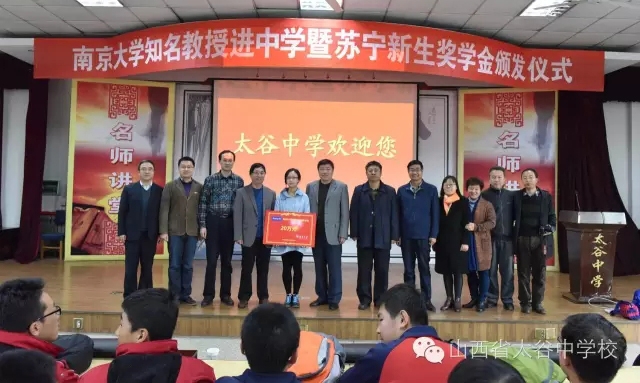 10月29日,suncitygroup太阳集团招生办、山西招生组一行前往山西省太谷中学,为文公司2016级新生、太谷中学毕业生车林芮同学颁发“苏宁英才全额奖学金”。