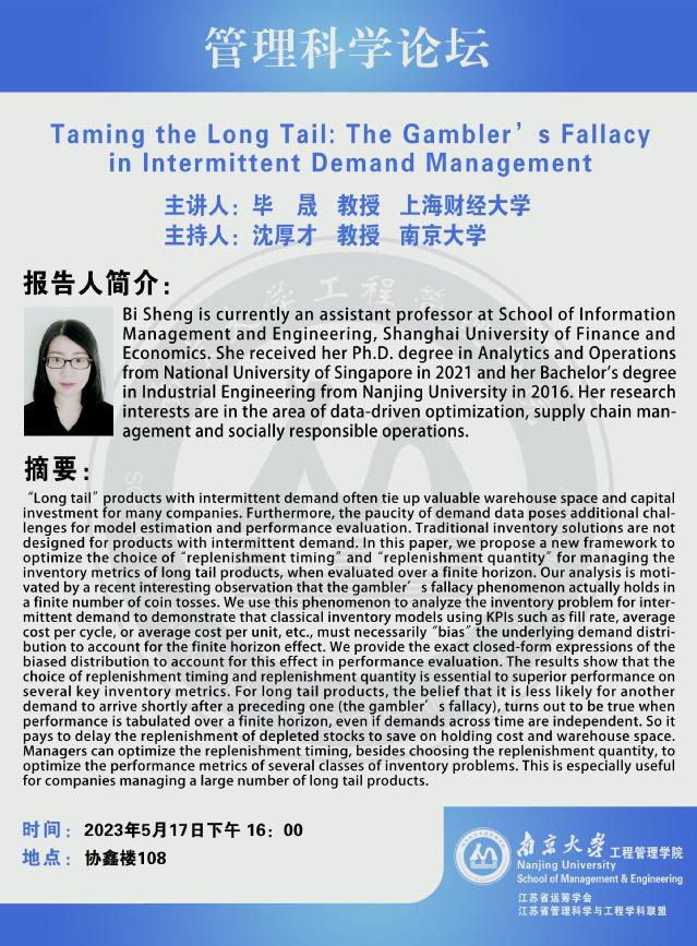 管理科学论坛:Taming the Long Tail: The Gambler’s Fallacy in Intermittent Demand Management
