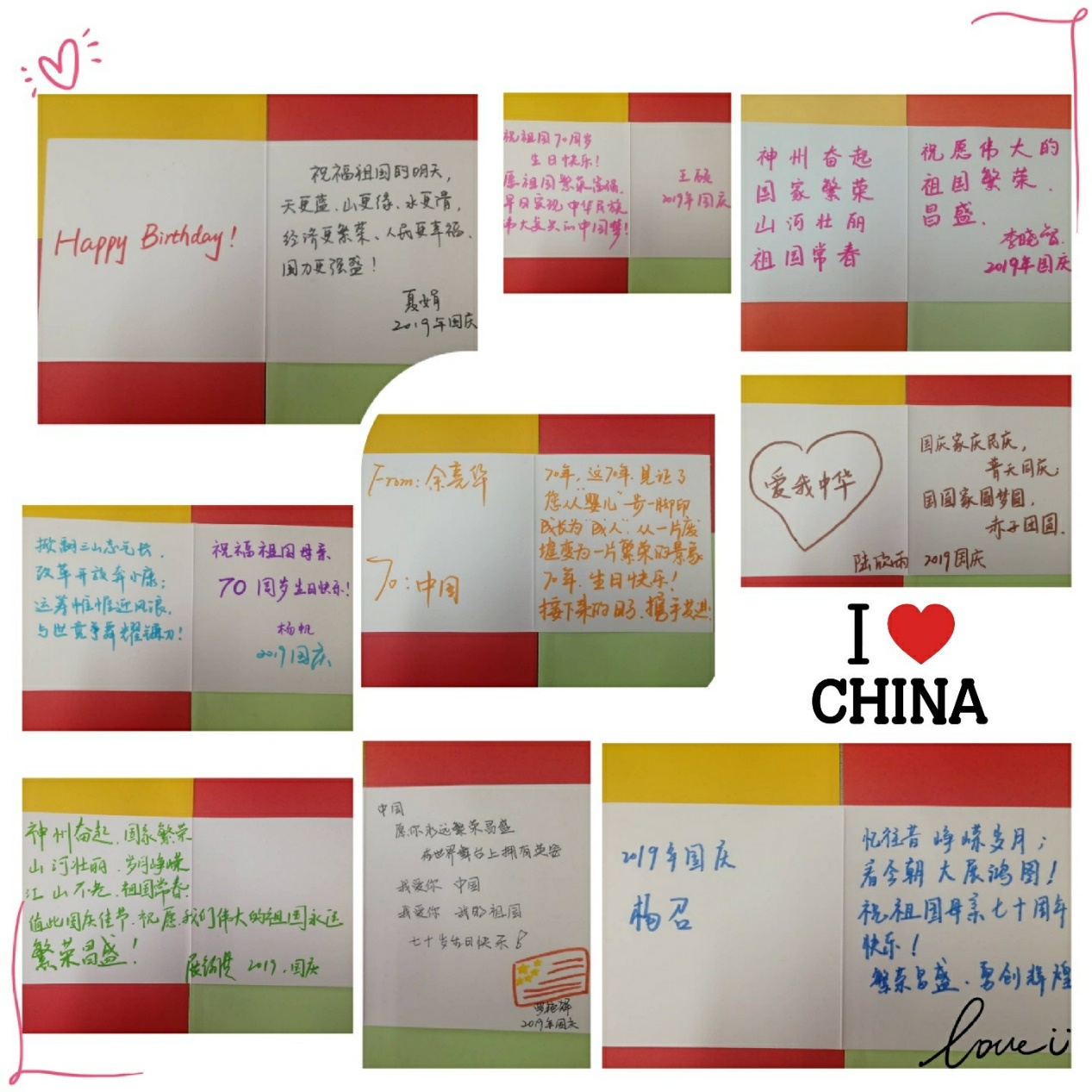 在“忆往昔”环节,党员通过观看短片《新中国成立70周年大事记》回顾了新中国的成长历史。70年在中华民族悠久的历史上只是短暂的一瞬,但是却书写了灿烂辉煌、彪炳史册的一页。短片用活泼的语言和生动的动画描述了青年人眼中的中国印象,深化了大家对中国发展历程的认知。随后,支部全体党员在精美的贺卡上写下对祖国母亲70华诞的生日祝福,通过“抒真心”表达了对祖国未来美好愿景的期待。