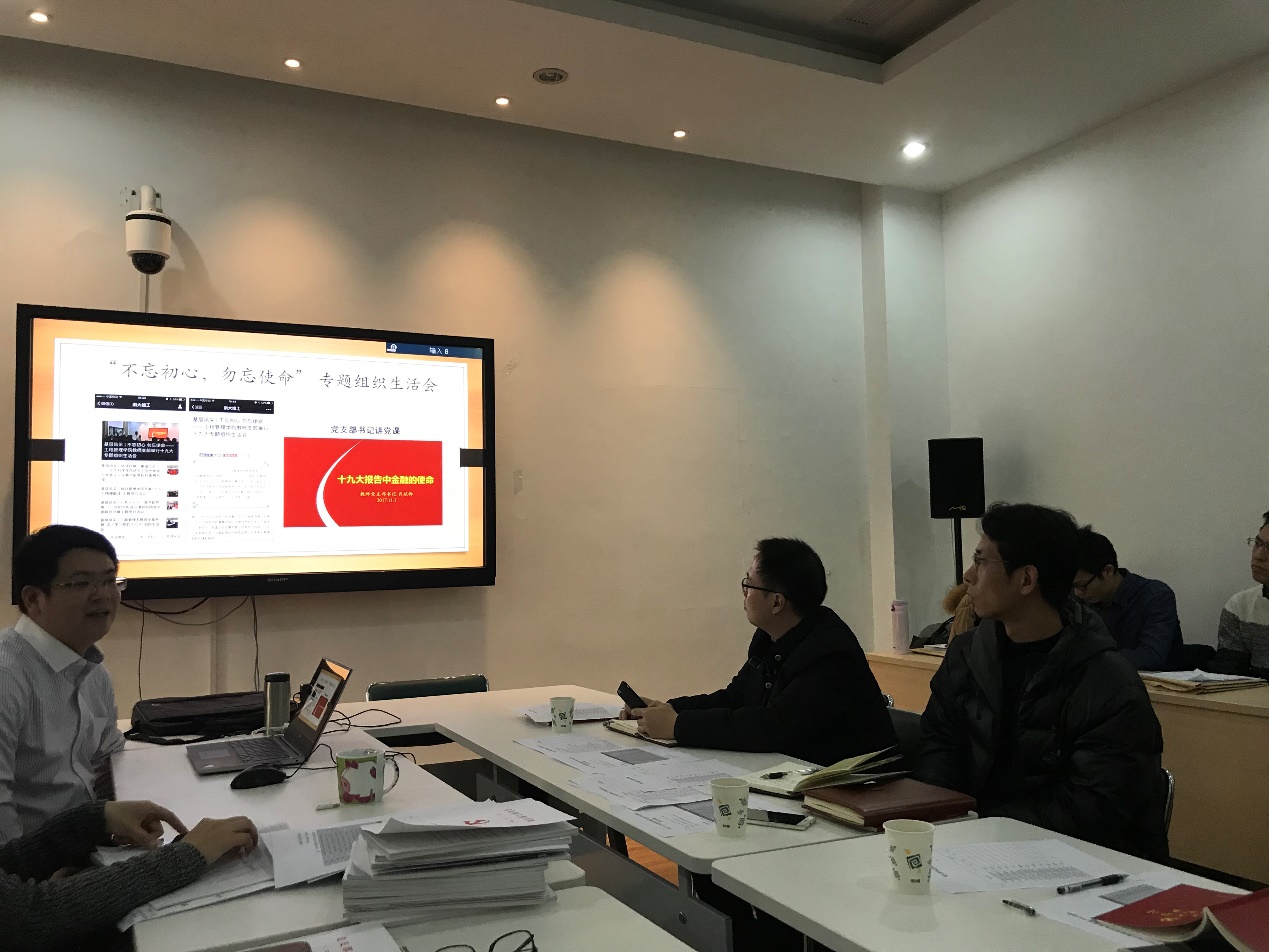 教职工党支部书记肖斌卿介绍了支部2017年以来开展的工作,并重点汇总了特色党日活动、党支部书记讲党课和组织十九大报告精神学习等亮点工作。在总结党支部工作的基础上,他提出今后的工作要强化内化式学习与思考,多方面、多样化开展党建。本科生党支部书记李晓智从支部介绍、支部活动、支部总结、支部展望四个方面进行了汇报。支部内党小组分组明确,学习活动开展有序,先后组织开展了知识竞赛、主题诗歌朗诵、参观雨花台烈士陵园等多样化的党日活动与组织生活。她提出结合员工特点开展党建活动及发挥党员先进性的工作展望。研究生各党支部的书记结合工作实际,对全年的工作进行了梳理总结,对于党支部工作、存在的问题和改进措施思路进行了详实的汇报。
