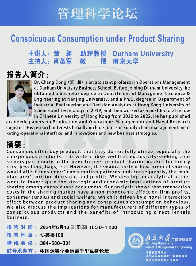 管理科学论坛:Conspicuous Consumption under Product Sharing