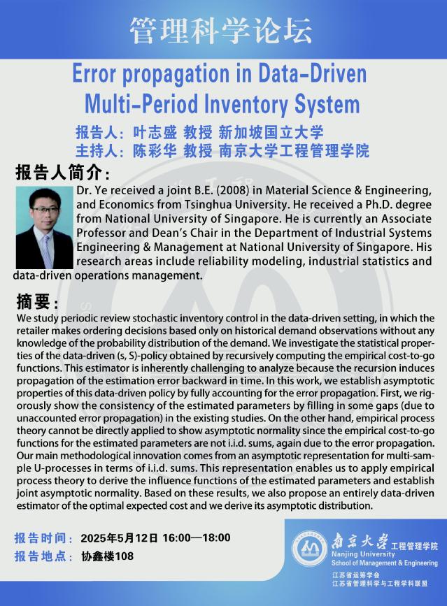 管理科学论坛:Error propagation in Data-Driven Multi-Period inventory System