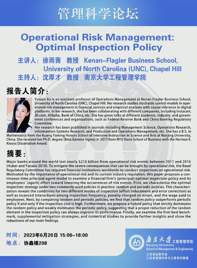 管理科学论坛:Operational Risk Management: Optimal Inspection Policy