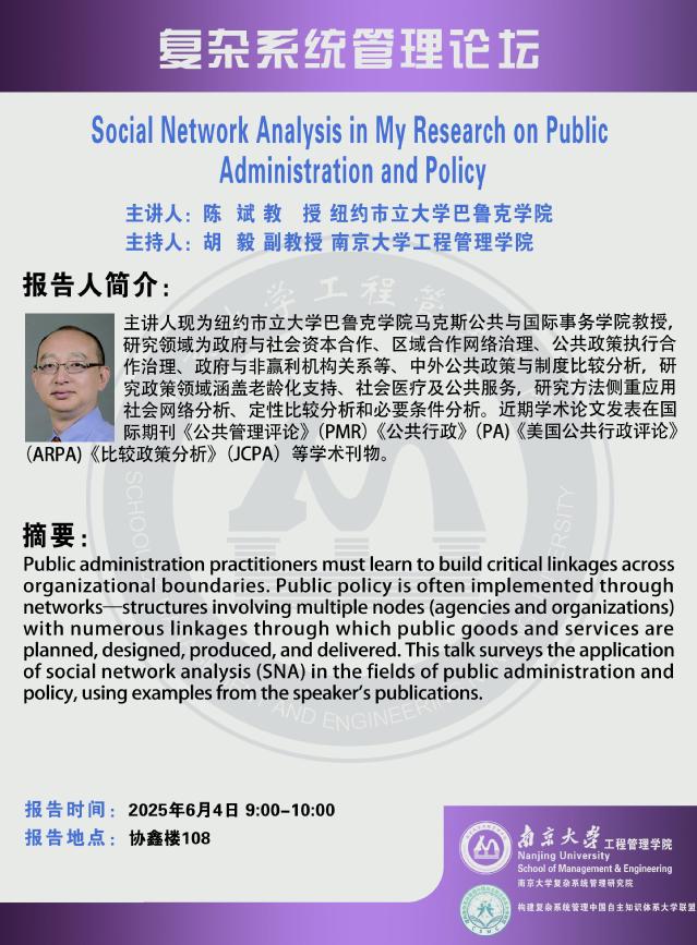复杂系统管理论坛:Social Network Analysis in My Research on Public Administration and Policy
