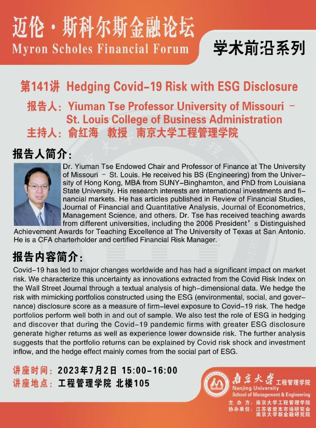 迈伦·斯科尔斯金融论坛:Hedging Covid-19 Risk with ESG Disclosure