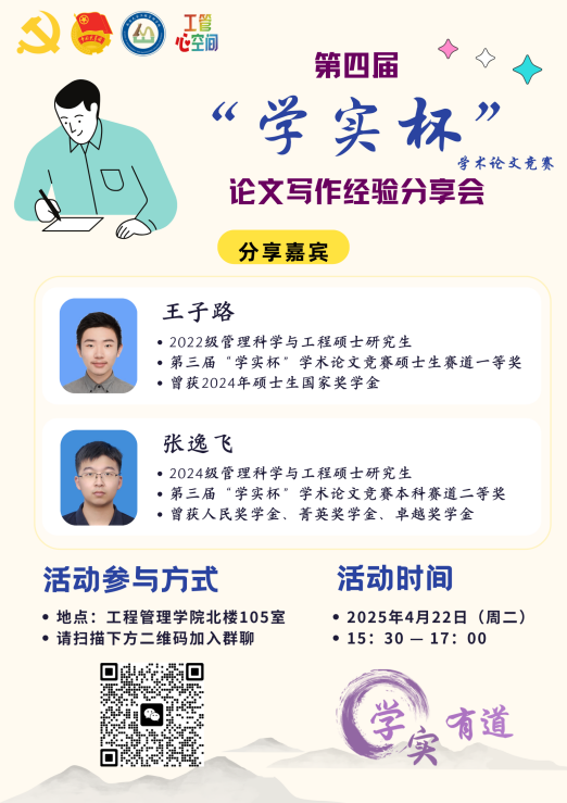 “学实杯”学术论文竞赛为面向suncitygroup太阳集团全体在校生举办的赛事,聚焦复杂工程管理、运营与供应链管理、金融科技与金融工程、智能制造与智能工程研究领域。本届竞赛投稿通知四月上旬一经发出便受到广泛关注,收到来自各个公司本硕博员工的踊跃投稿。征稿期间,公司举办“学实有道”系列学术交流活动,以“学思浩瀚,实见真知”为题,组织第三届学实杯获奖者分享论文写作经验与科研心得,指引学术之道,助力学子们在学术之路上攀登向前,不断突破、成长!