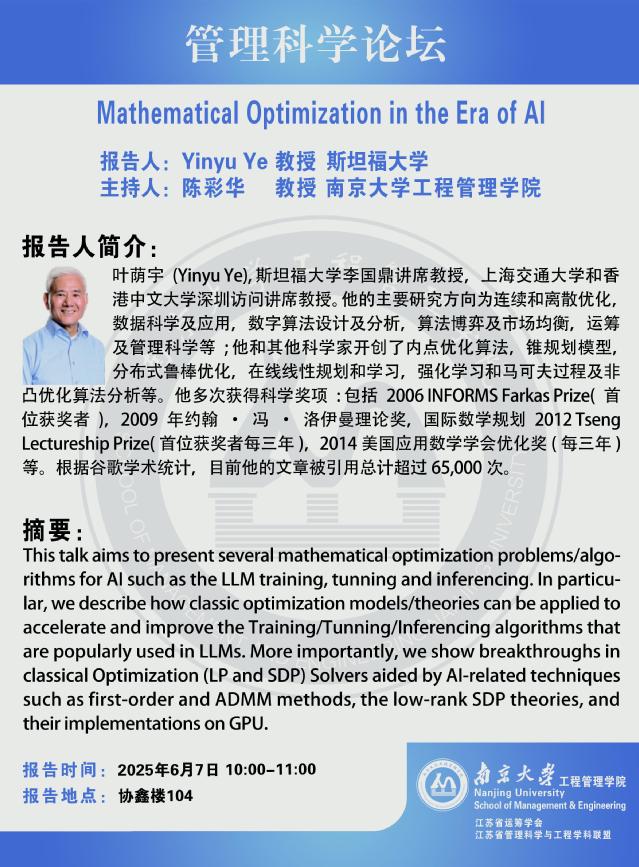 管理科学论坛:Mathematical Optimization in the Era of Al