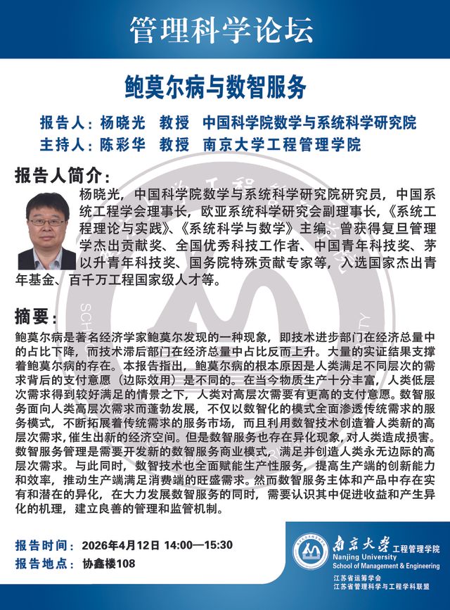 管理科学论坛:鲍莫尔病与数智服务