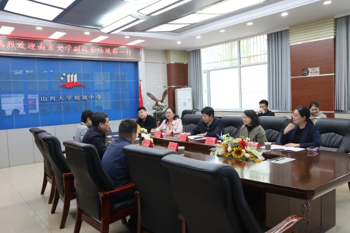 在山西大学附属中公司,两校围绕拔尖人才培养与大中衔接开展座谈交流。山大附中董事长李奋平、副董事长赵祁红,高中教务处副主任阎炜出席活动。