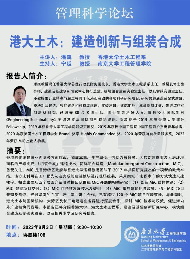 管理科学论坛:港大土木:建造创新与组装合成